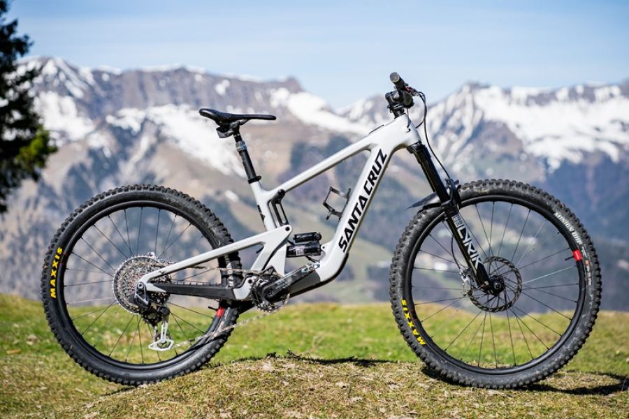 Das Santa Cruz Heckler SL gehört mit seinen 160/150mm Federweg in der Light E-Bike Klasse schon zu den Bikes mit mehr Federweg und so ist auch mit 18,9 kg das etwas höhere Gewicht zu erklären. Die Ausstattung des Bikes lässt keine Wünsche offen. Geschaltet wird per Funk mit Sram XX AXS Transmission. Auch die Rock Shox Reverbe Sattelstütze geht mit Funksignal. Bremsen sind die neue Code Ulimate Stealth nun eine wirksame Verbesserung, gegenüber der alten Code. Die Federgabel Rock Shox Lyrik Ulitmate liefert einen fantastischen Job ab und der Rock Shox Deluxe Ulimate lässt den VPP Hinterbau fein ansprechen. Das Bike rollt auf edlen Reserve 30mm Carbon Laufrädern die einen sehr stabilen Eindruck vermitteln. Natürlich dürfen da die Maxxis Minion Reifen nicht fehlen, um die grandiose Ausstattung abzurunden.