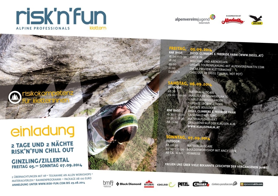 Vom 05. bis 07. September wird mit risk'n'fun das Klettersaisonende gebührend gefeiert.