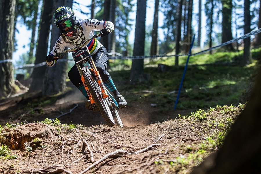 Auf einer schnellen und staubtrockenen Strecke mit jeder Menge Schlaglöcher und Spurrinnen ging der erste Crankworx-Downhill in Innsbruck am Samstag über die Bühne. Tracey Hannah (AUS) und Weltmeister Danny Hart (GBR) wurden ihren Favoritenrollen gerecht und setzten sich hoch über der Tiroler Landeshauptstadt durch. Leicht hatte es Hart allerdings nicht: Der Brite lag lediglich 0,15 Sekunden vor dem zweitplatzierten Australier Mick Hannah.Es galt, das Bike möglichst laufen lassen und dennoch bei den schwierigen Steilkurven und Wurzelteppichen unter Kontrolle halten. „Man ist immer am Limit. Auf dieser Strecke greift man immer wieder zur Bremse, um bei der nächsten Kurve die richtige Linie zu erwischen. Körperlich ist das sehr fordernd“, so Hannah. Auch Danny Hart schlug in dieselbe Kerbe: „Auf dieser Strecke kann man fast zu viel Gas geben. Da muss man sich einbremsen. Man will überall mit vollem Speed reinfahren, weil der Kurs so wild und ausgefahren ist.“