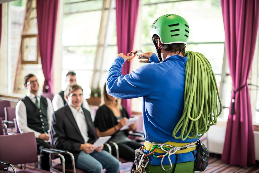 „Wir können nur wachsen, wenn wir uns unseren Ängsten stellen" ist einer der Tipps des staatlich geprüften Berg- und Skiführers Alexander Huber, die er während seines Vortrags im Rahmen der „Erlebnisklettertage" der Leoganger Heimathotels am 12. September 2014 vermittelt. Für ihren Dokumentarfilm „Am Limit" über die Leidenschaft zum Speedklettern erhielten Alexander und sein älterer Bruder Thomas Huber den Bayerischen Filmpreis. Neben der Profikletter-Vorführung am KRAXL-LEO des Hotel Salzburger Hof Leogang begrüßt Alexander Huber beim „Meet and Greet" die Teilnehmer und lädt am Abend zum Vortrag in den STOABERG, den ebenfalls neuen Seminarraum des Aktiv-Hotels.