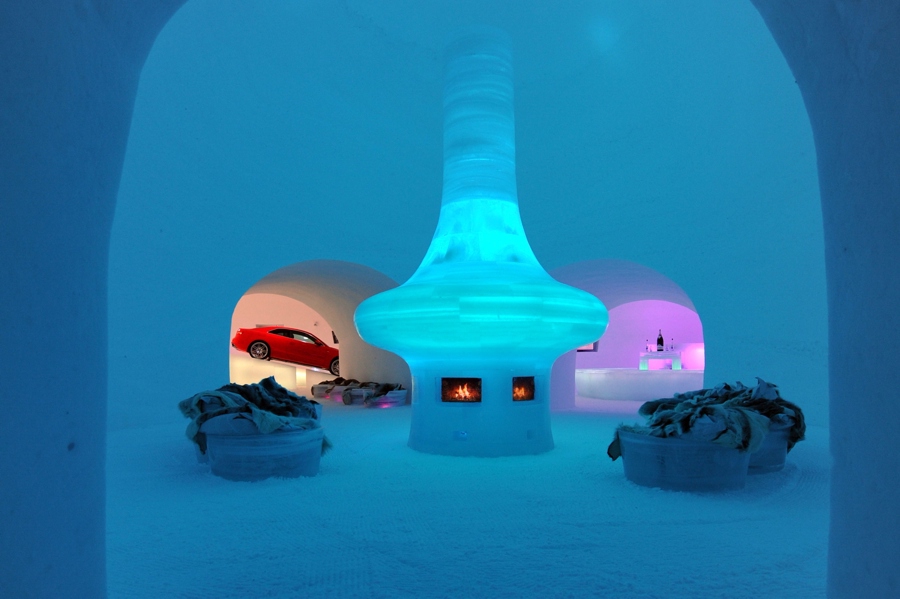 Die Innengestaltung erfolgte wiederum durch den Künstler Max Seibald und seine Assistentin Anna Kramm. „Der Eingang erschließt dem Publikum einen ca. 300 m2 großen Innenraum, welcher in seiner statischen Gesetzmäßigkeit ganz nach romanischen Konstruktionsprinzipien gegliedert ist", erläutert Seibald. „Mit dem System einer flexiblen Innenform baute das ICE-CAMP-Team die drei Kugelkalotten schichtweise aus Kunstschnee und verband sie durch Torbogengänge. Die schlicht geprägten Raumvolumina setzen sowohl die der Nutzbarkeit gedachten Eisobjekte in Szene, als auch jene, deren einmalige Gelegenheit es sein wird, sich vor Ort selbst von einem gelungenen Bauprojekt zu überzeugen." Für den Bau der künstlerischen Eis- und Schneewelt bewegte das ICE-CAMP-Team um Chris Geissler und Andi Tremschnig 60 Tonnen Eis und 5.000 Kubikmeter Schnee.
