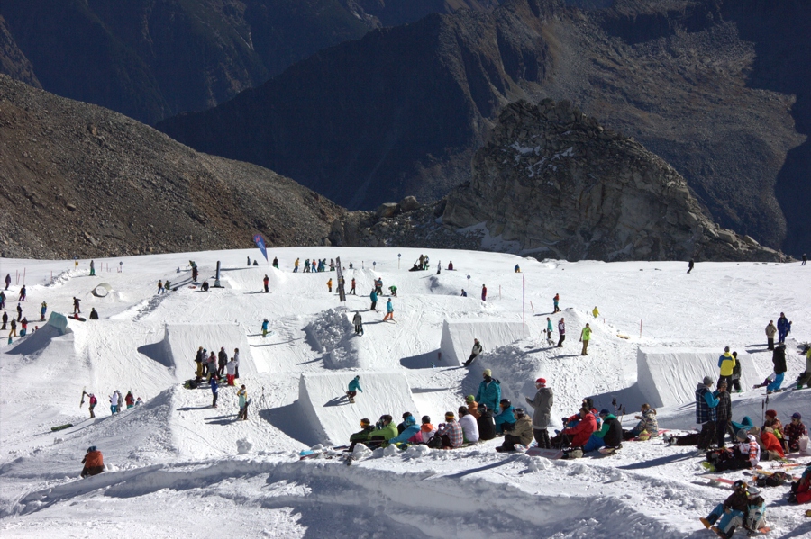 Ein bisschen Mangelwahre... Ist in diesem Jahr das weiße Gold, das doch der Baustein unserer Träume ist. Umso mehr beeindruckte, welchen Park die Shapecrew um Wille Kaufmann in Hintertux neben den mächtigen Olperer gesetzt hat. Nachdem die Jib- und Mediumline schon 2 Wochen vorher in die Saison gestartet waren, bekamen die großen Kicker der Proline noch zwei Tage vor dem großen Opening ihren letzten Feinschliff. Die Grundlage für ein weiteres denkwürdiges Opening in Hintertux war also geschaffen.