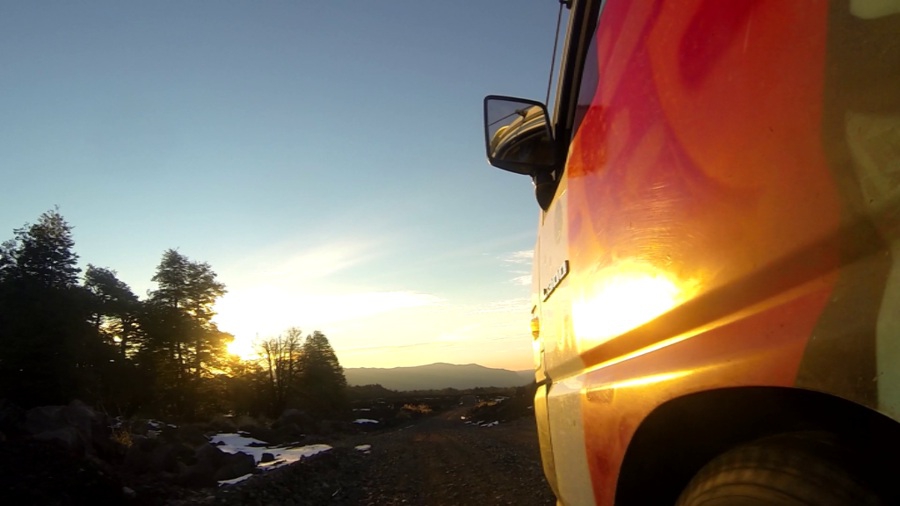 Die Zeit in der Region Santiago liegt nun hinter uns. Für Barbara, Andreas und mich ging die Reise weiter Richtung Süden Chiles. Auf zu den Vulkanen zwischen Chillián und Pucón! Das Dach über dem Kopf bietet uns in dieser Zeit einer der Wicked Campers. Das Busleben im Winter ist kalt, reduziert aufs Nötigste - so nah wie möglich am Herzschlag der Natur möchte man sagen.
